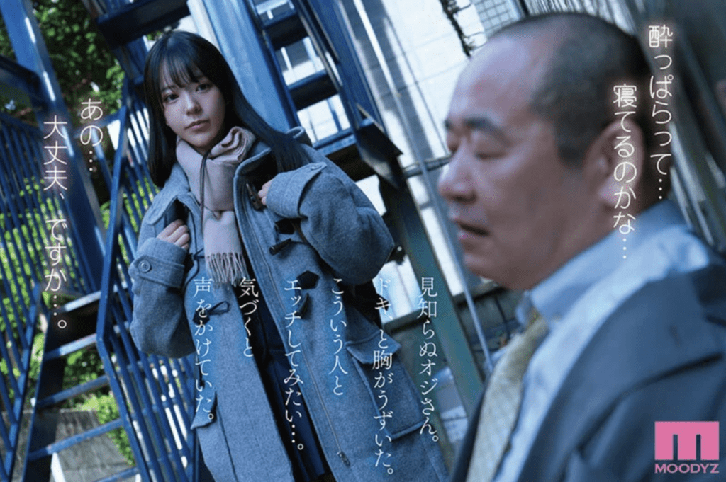 ある日、酔い潰れたオジさんを心配して声をかけた。酔ってセクハラをされて、恥ずかしさを押し殺して誘ってしまった。「オジさんみたいな人と…そういう事していたいと思ってたので…」公衆トイレでオジさんと2人きり。もう後戻りはできない…。